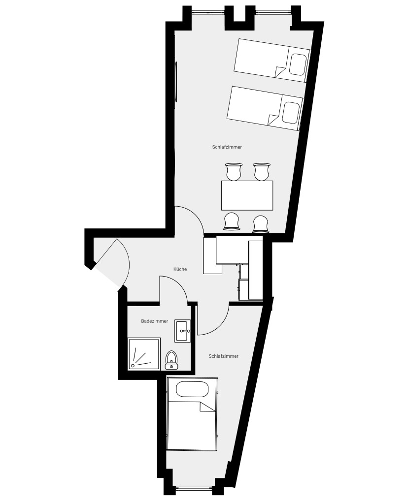 - 1 Doppelbett, 1 Etagenbett (2 Schlafzimmer)